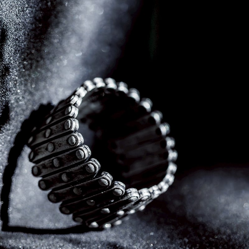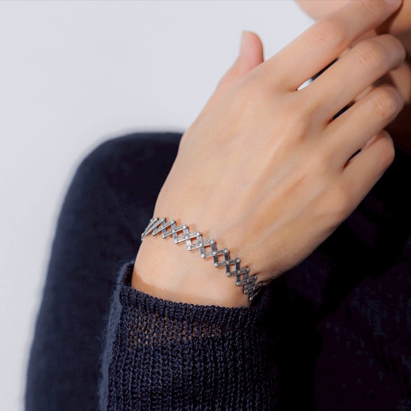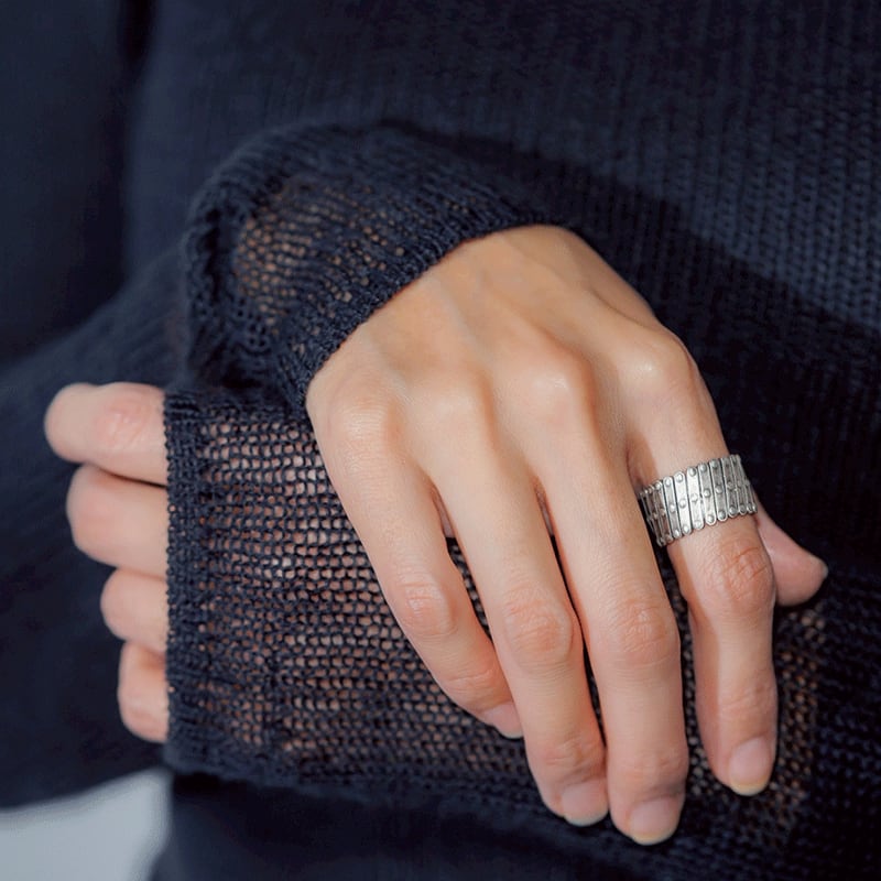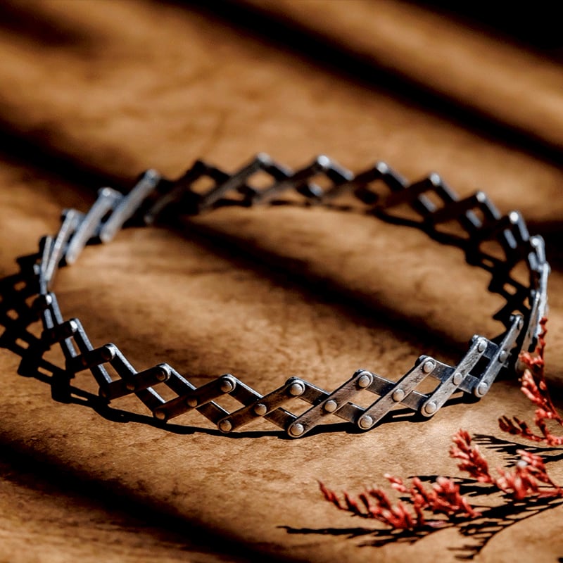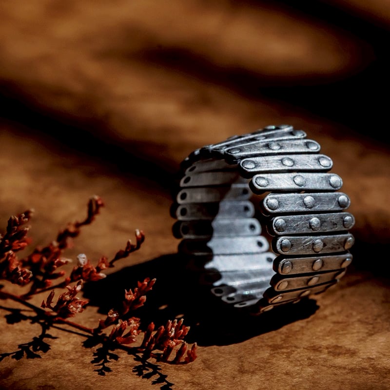 シルバー925、25mmのシルバープレートを組み合わせ制作した、可動式のリング・ブレスレットです。接続箇所に、ワッシャー(シルバー925)を入れることで、拡張・縮小の動きを滑らかにしています。