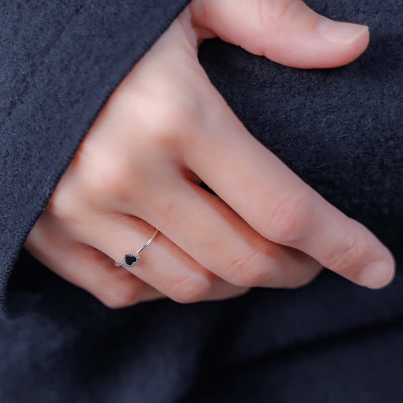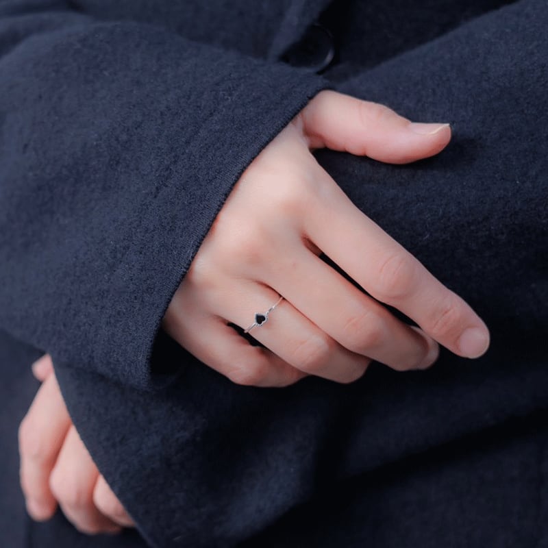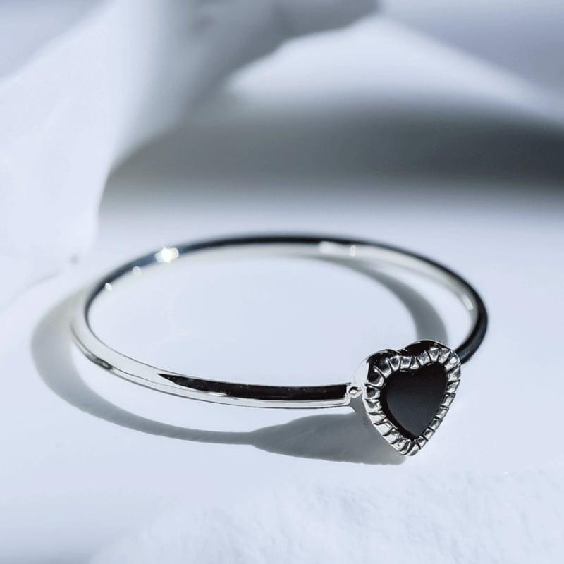 山梨県甲府にてフラットなハート型に削り出した天然石オニキスを、ヴィンテージ加工を施したシルバー925フレームに埋め込み仕上げたリングです。