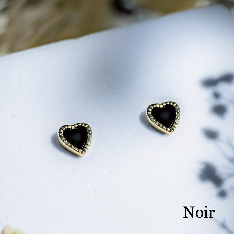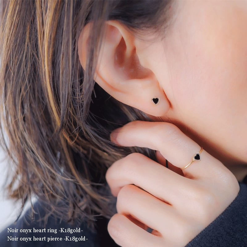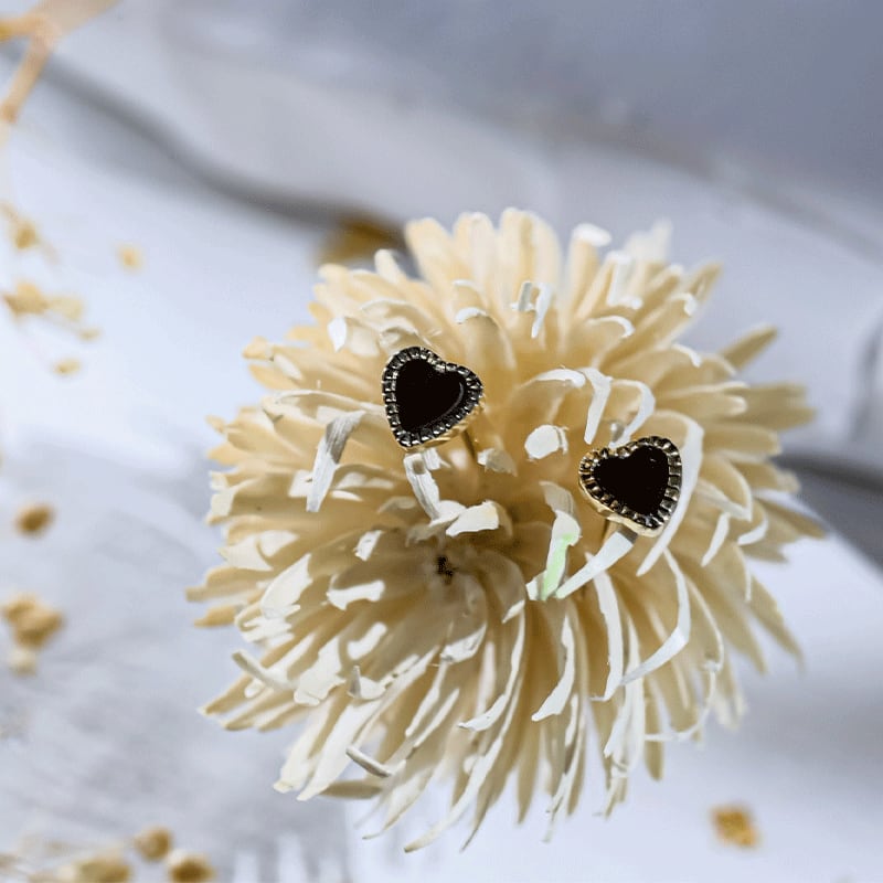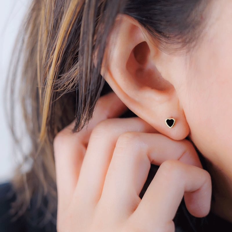 可愛らしいハートモチーフも、ブラックならクールで洗練された印象となり、カジュアルな装いからフォーマルまで、幅広いスタイルをお楽しみいただけます。シンプルでコントラストのはっきりしたアイテムは、コーディネートのアクセントにぴったり♪さりげない存在感で、自分らしさをアップデートさせてくれるジュエリーです。