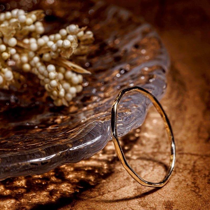 Claudine (0.8mm幅)と同デザイン、上品で落ち着いた印象の12角リング(1.0mm幅)です。シンプルなデザインですが、光の当たる角度によって輝き方を変化させ、日常にさりげない輝きをを添えてくれます。お手持ちのリングと重ねづけしたり、ピンキーリングとして、幅広い年代の方に永くご愛用頂けます。指先にしつらえる品と煌めき...日々の装いにそっと馴染むジュエリーは、大切な方へのプレゼントにもおすすめです。