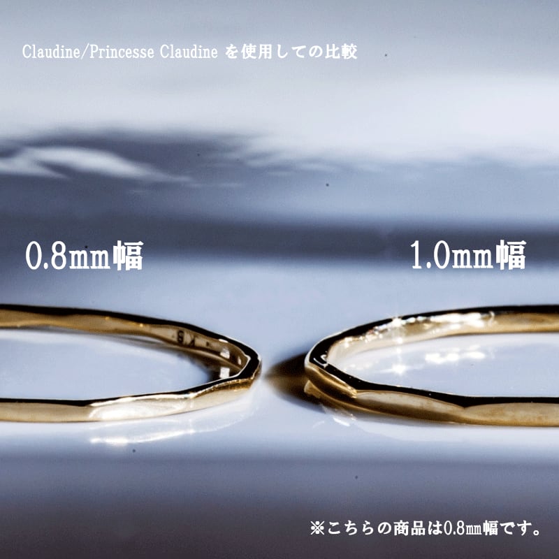【Frele collection のアイテムは鍛造と呼ばれる手法を用いて制作しているため、繊細ながらも高い強度を実現しています。そのため変形に強く、普段使いにもおすすめです。また内甲丸という加工をすることで滑らかな指通りでストレスのない指輪となっております。】