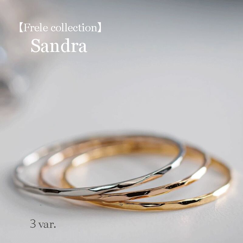 Sandra(サンドラ)と名付けたこちらのアイテムは、職人がランダムに手打ちした世界にたった一つ、唯一無二のリングです。